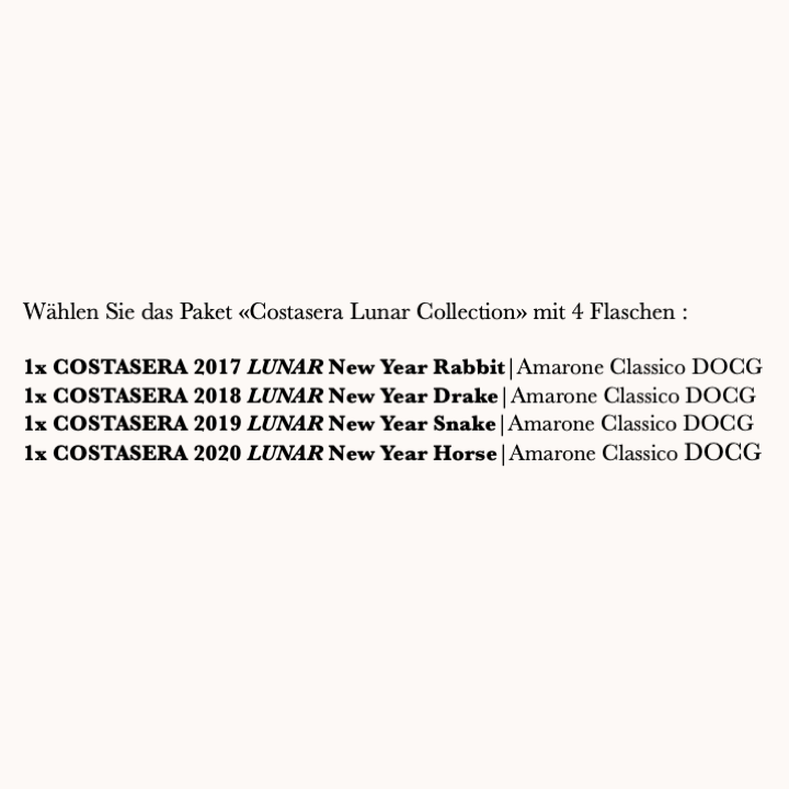 Wählen Sie das Paket «Costasera Lunar Collection» mit 4 Flaschen: