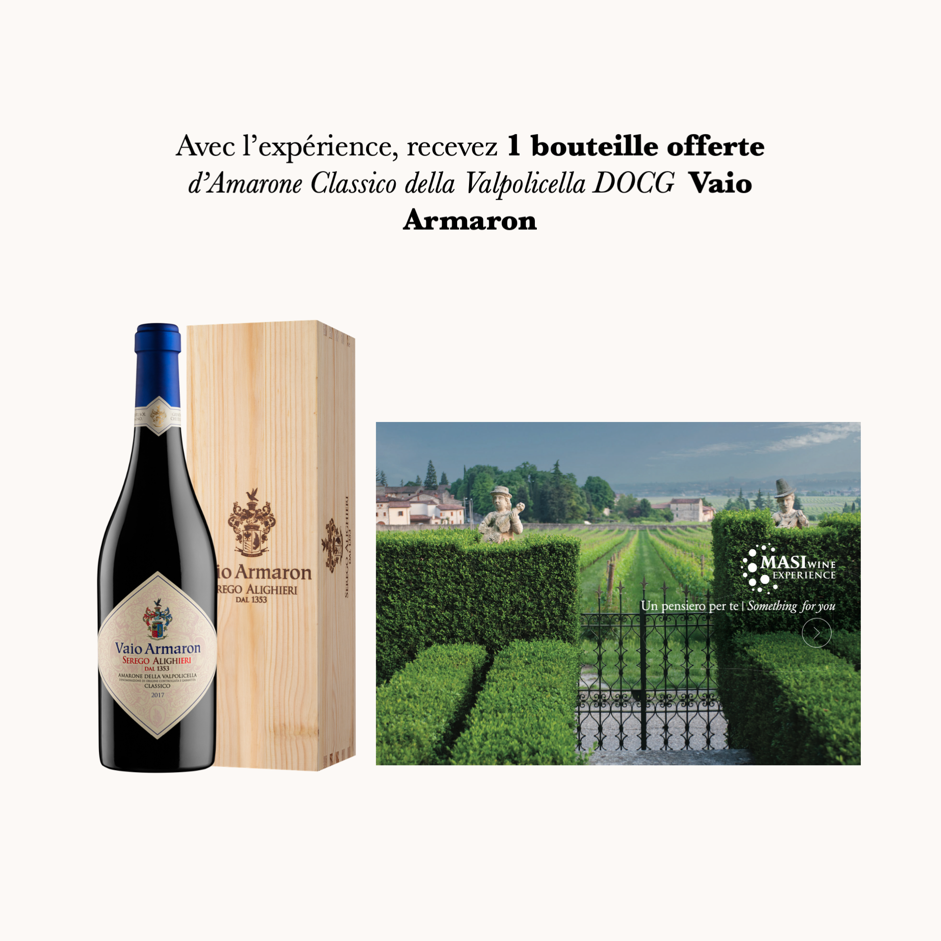 - 1 bouteille d’Amarone Classico « Vaio Armaron » dans une confection personnalisée pour déguster notre vin à l’avance ou le partager au moment de la livraison ;