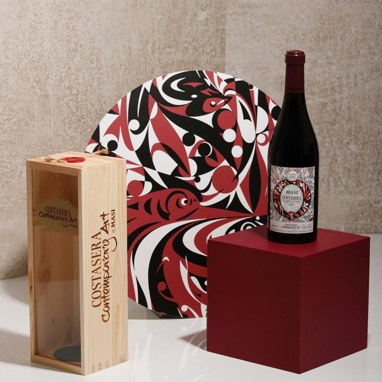 Nato per celebrare l’incontro tra arte e vino, il progetto“Costasera Contemporary Art”, a cadenza biennale, invita un artista di fama internazionale, proveniente da un Paese legato a Masi e ai suoi vini, a realizzare un’opera dedicata al vino icona di Masi, l’Amarone Costasera.