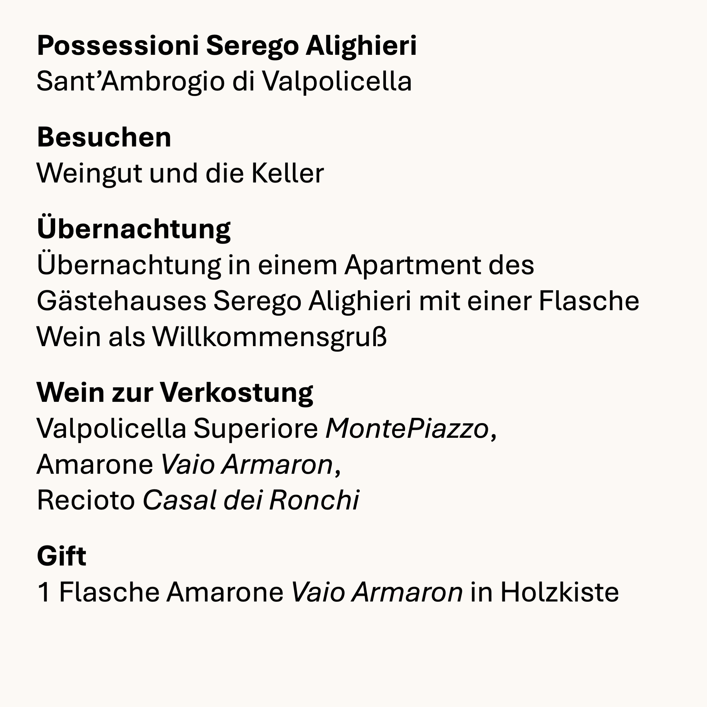 EXPERIENCE | Sogno "DiVino" | Possessioni Serego Alighieri
