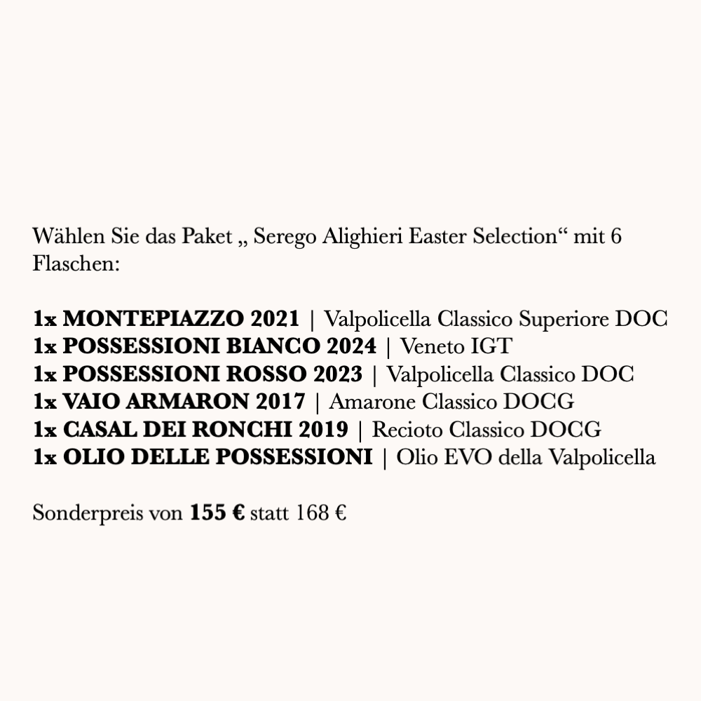 Wählen Sie das Paket „Serego Alighieri - Easter Selection" mit 6 Flaschen: