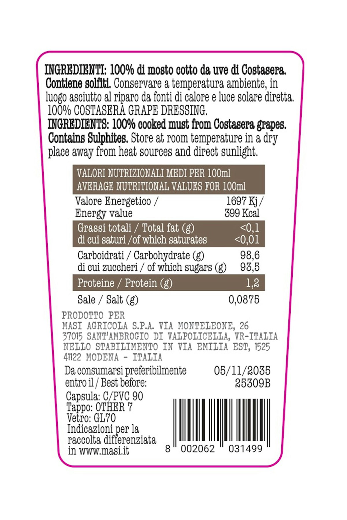 CONDIMENTO DA UVE DI COSTASERA | Condimento al mosto cotto d'uva di Costasera | 100 ml