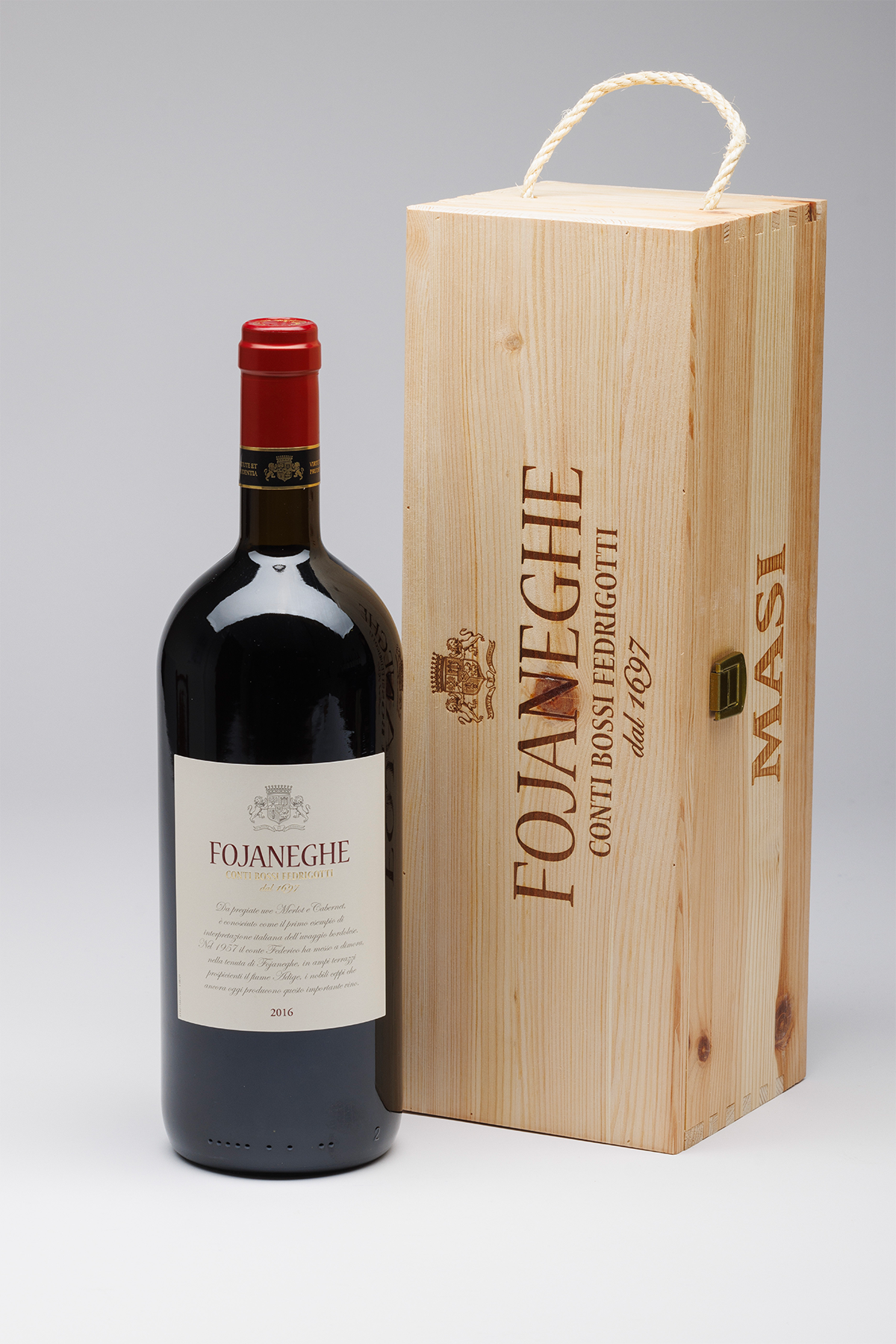 Elegantemente strutturato al palato, con finale lungo e vellutato, è l’etichetta d’eccellenza della Cantina trentina dei Conti Bossi Fedrigotti. Primo esempio di uvaggio bordolese in Italia, nato nel 1961 grazie alla felice intuizione del Conte Federico. Prodotto nell’omonimo vigneto da Merlot e Cabernet identifica nel mondo la nobiltà della famiglia.