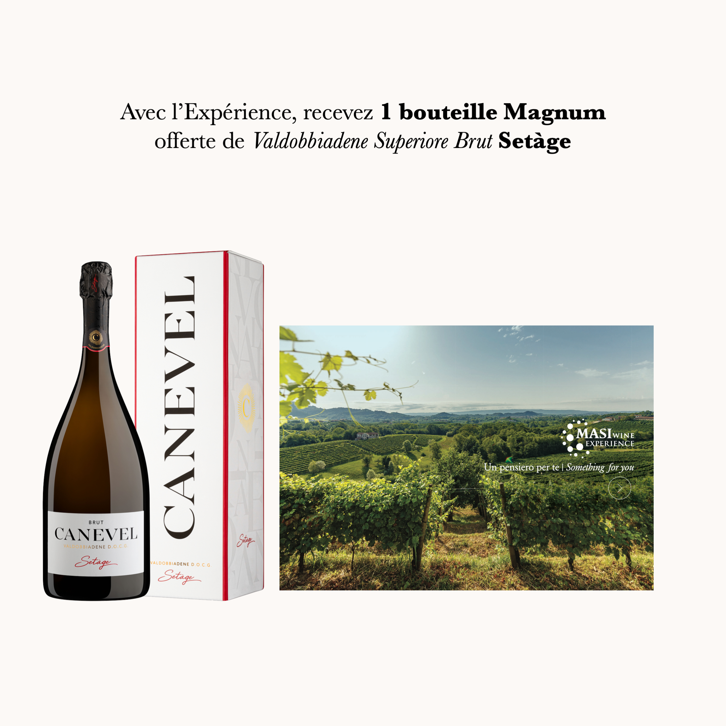 - le bon-cadeau numérique envoyé par e-mail pour l’expérience « Sparkling Moments » au domaine Canevel Spumanti à Valdobbiadene pour 2 personnes, comprenant :