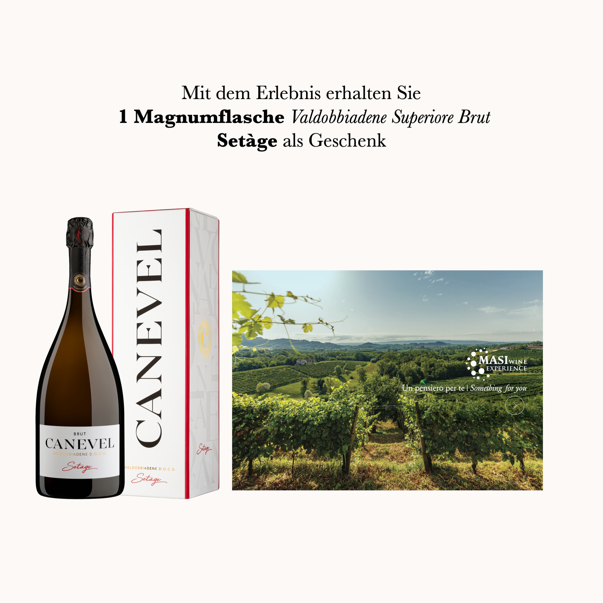 - der digitale Gutschein per E-Mail für das Erlebnis "Sparkling Moments" bei Canevel Spumanti in Valdobbiadene für 2 Personen,einschließlich: