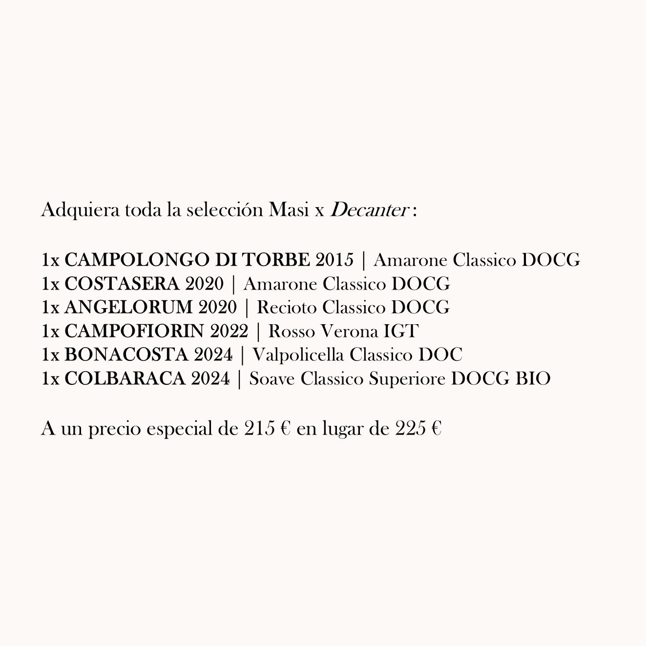 Adquiera toda la selección Masi x Decanter :