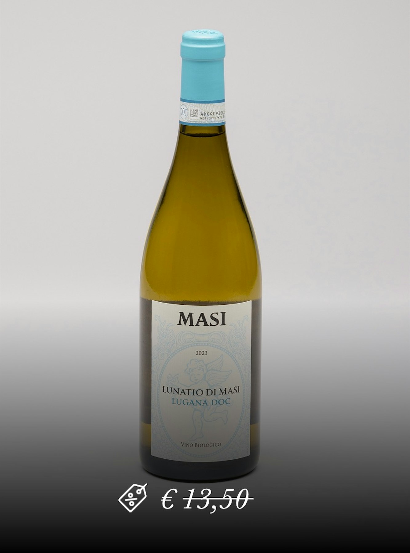 Il Lugana Masi Lunatio è un bianco fruttato, di grande bevibilità e freschezza, prodotto con le tradizionali uve Trebbiano in vigneti selezionati a conduzione biologica nella zona storica del Lugana, che si estende sulle dolci colline a sud del lago di Garda, tra le province di Verona e Brescia.