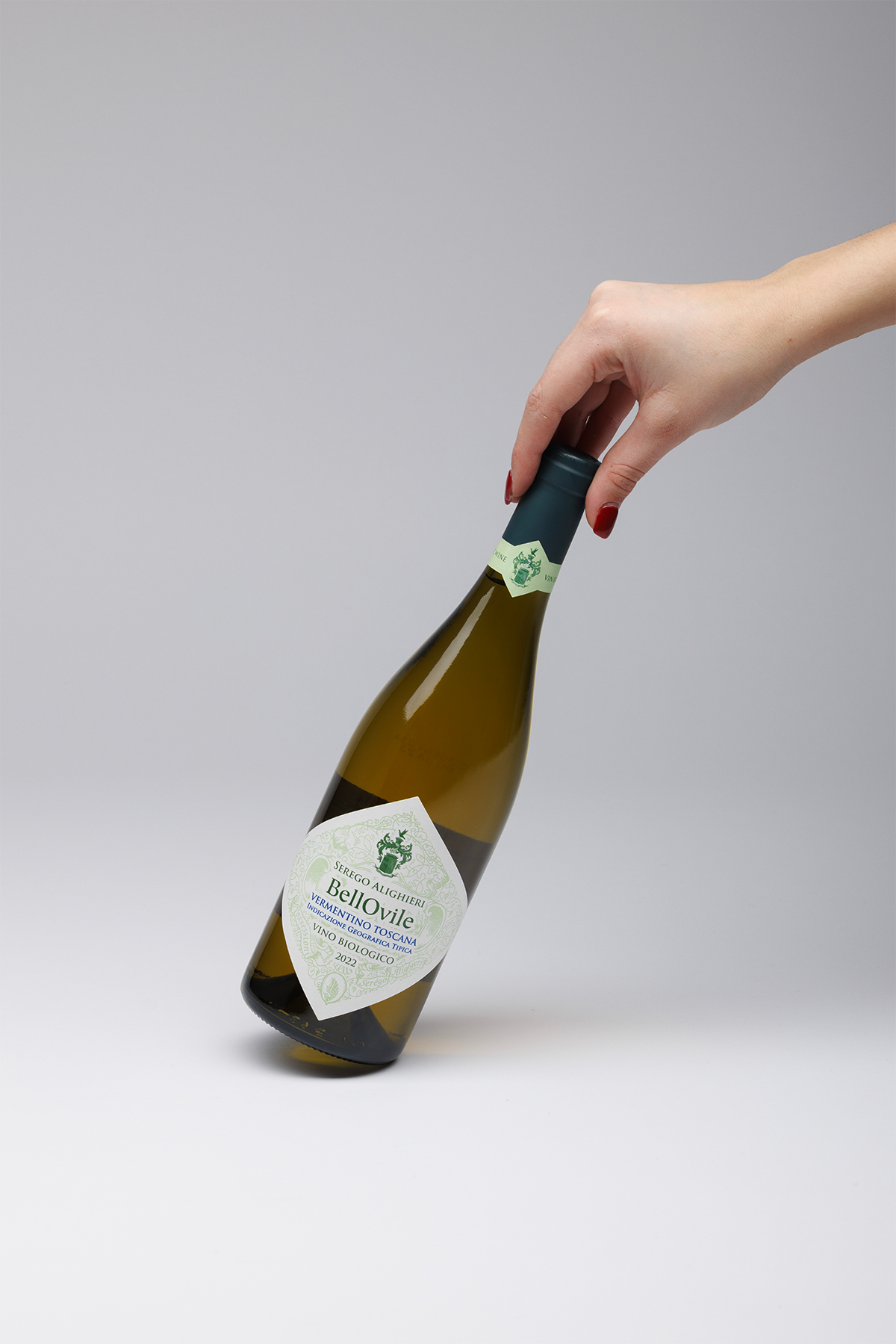 Die biologisch angebaute Vermentino-Trauben ergeben ein Weiß, das reich an Aromen von Blumen und weißen Beeren ist.
