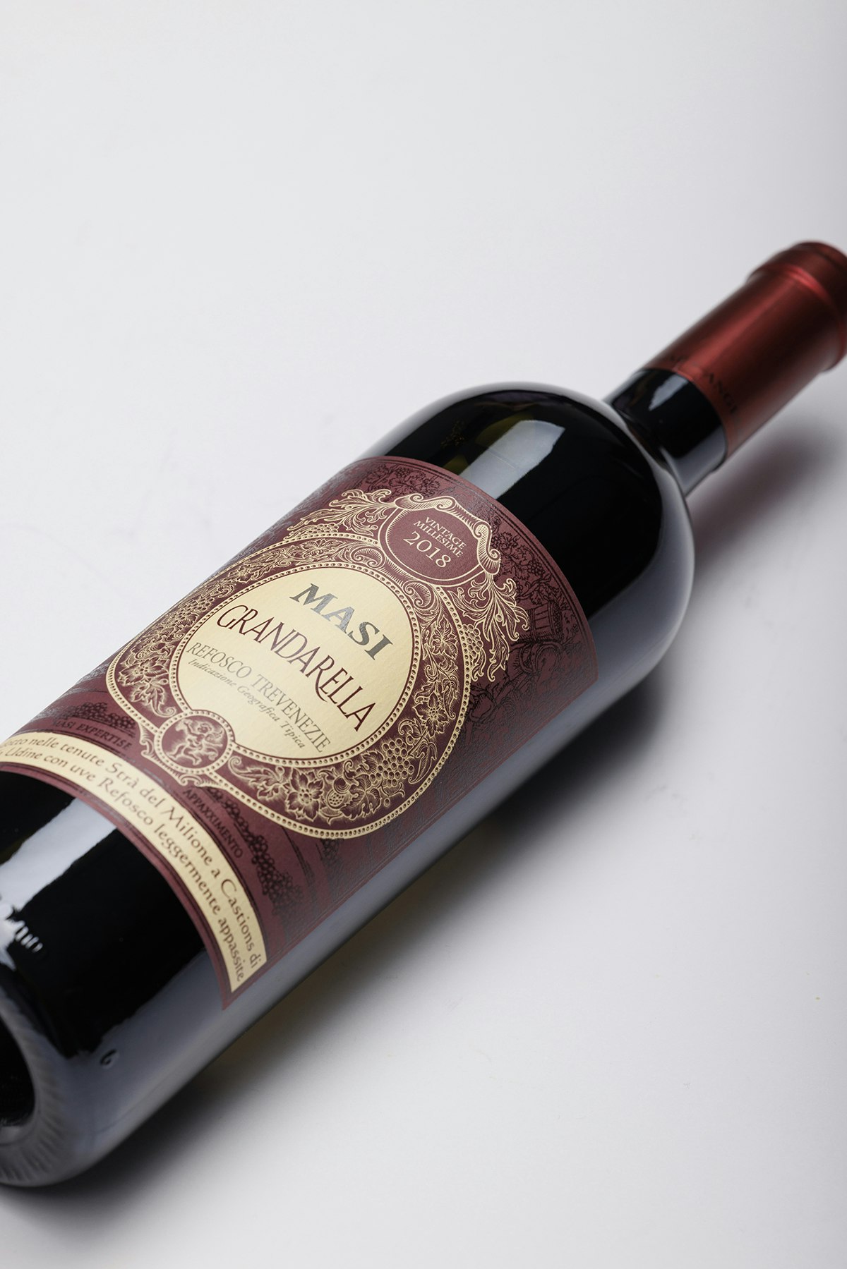 original production method inspired by the technique employed for Amarone. Given extra complexity with the addition to the blend of the special Oseleta grape, rediscovered by Masi, ageing in small oak casks accentuates its international style.